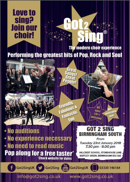 Every Tuesday - 7.30pm - 9pm South Birmingham Choir